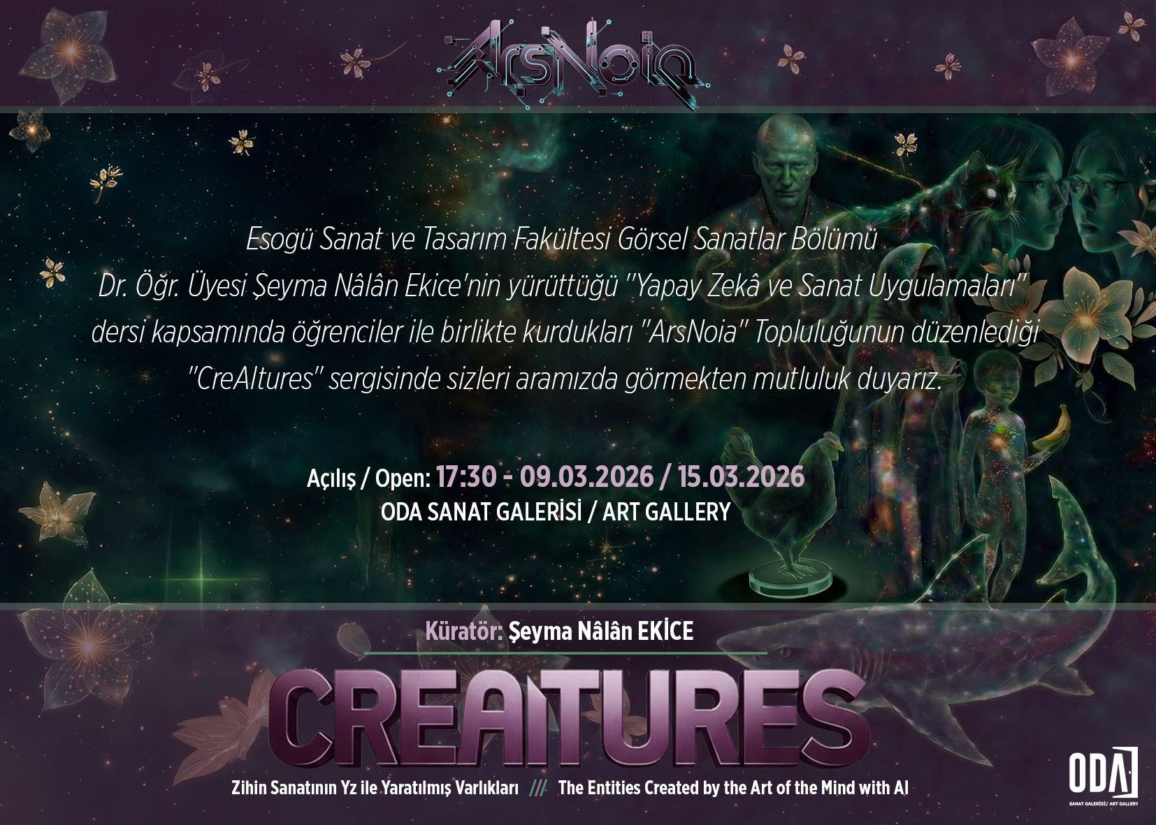 Görsel Sanatlar Bölümü öğretim üyesi Doç. Serenay Şahin’in kişisel sergisi, 13-29 Mart 2026 tarihleri arasında Değartlab Project Space ev sahipliğinde sanatseverlerle buluşacaktır.