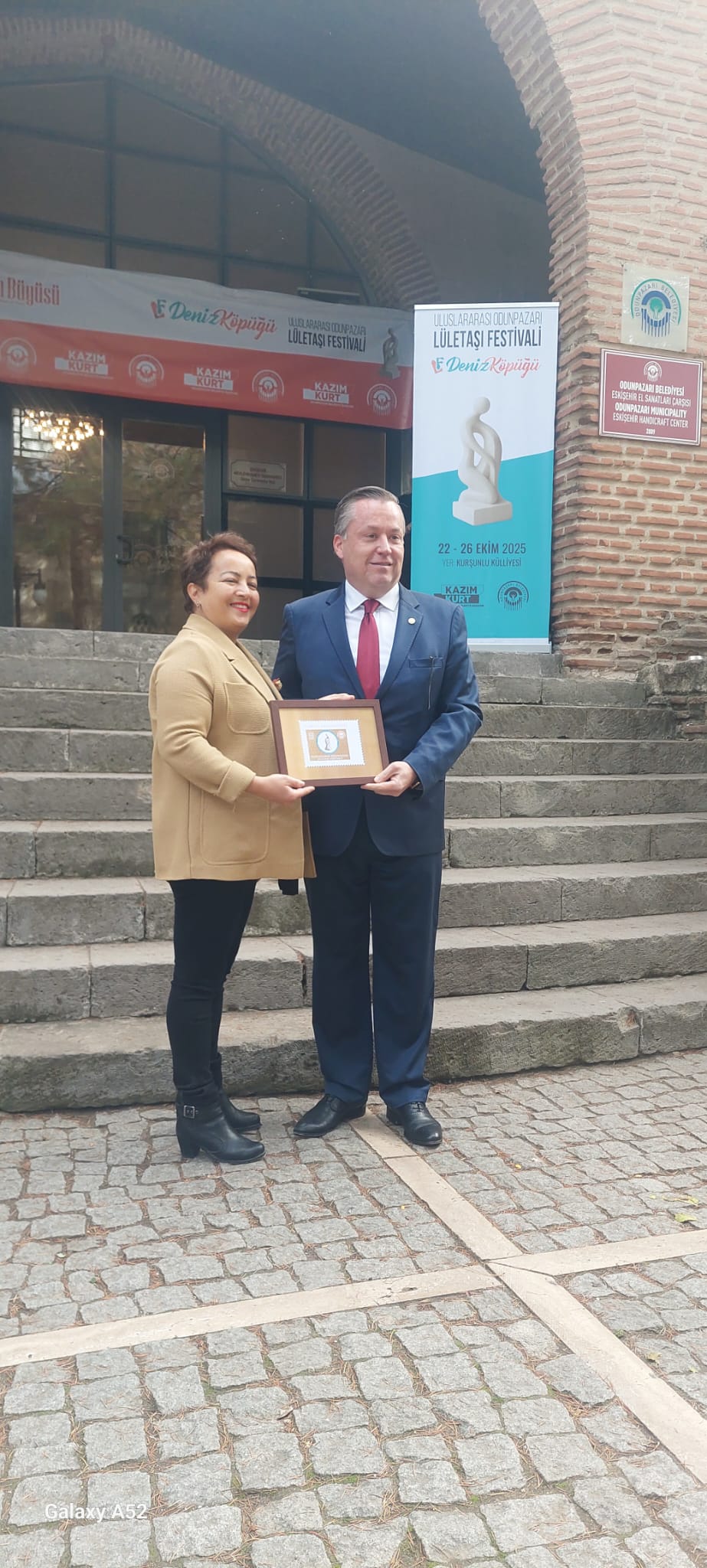 Dekanımız Prof. Dr. Şirin ŞENGEL festival kapsamında tasarladığı pul çalışmalarını Odunpazarı Belediye Başkan Vekili Adnan Evren Olcay’a takdim etti.