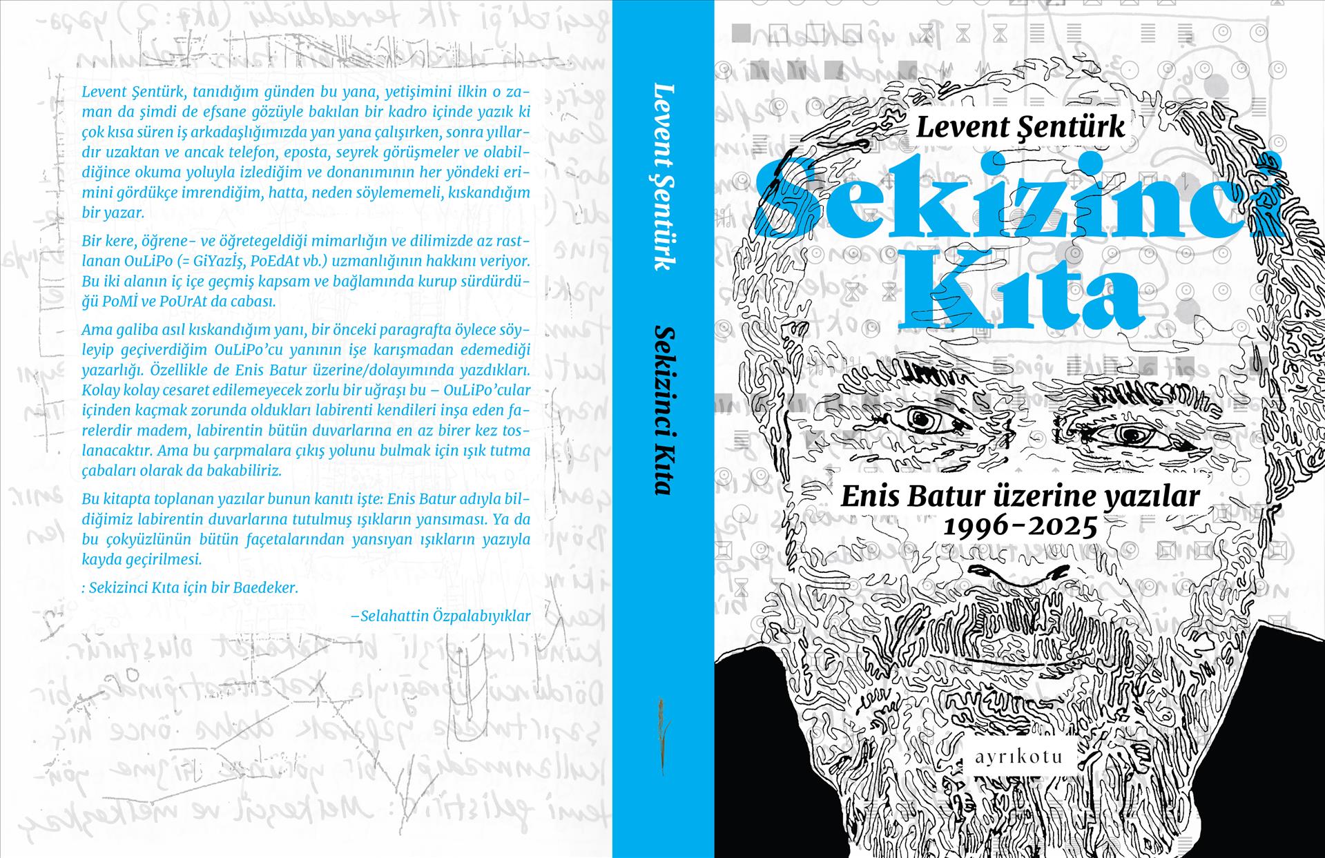 Levent Şentürk (1974) Sekizinci Kıta’da Enis Batur’u konu alan yazılarını bir araya getiriyor. Yazdığı iki yüz ellinin üzerinde kitapla, yanı sıra yarım yüzyılı bulan yayıncılık yaşamı ve dergiciliğiyle efsaneleşmiş şair ve yazar Enis Batur’un (1952) yapıtları üzerine metinlerden oluşan Sekizinci Kıta’daki metinler mimarlık, tipografi, mektup, dergi, topoloji, kent, şiir, elyazısı, miras ve özgeçmiş gibi temalarla örülüyor ve Batur’un uçsuz bucaksız eserinden nektar topluyor. Kitap, Şentürk’ün otuz yıla yayılan ve Enis Batur’un üretimlerinden yola çıkan konferans, dergi ve kitap yazılarını, atölye üretimlerini derliyor. Enis Batur, çağdaş Türk yazınında yapıtının cesameti (dev bir külliyat) kadar eserinin (her yönden) cesaretiyle de öne çıkmış bir köşe taşı. Hakkındaki yayınlar, kitaplar, atölyeler, bu üretime kıyasla dar kalıyor denebilir. Şentürk, Batur’un devasa yazısını Sekizinci Kıta diye adlandırıyor ve bunu metinlerinde enine boyuna işliyor. Sekizinci Kıta kapsamı ve duruşuyla, güncel ve yenilikçi bir yaklaşım ortaya koyuyor. Kendini “o kıtada yaşayan biri” gibi gördüğünü belirten yazar, Batur’un düzyazısı kadar şiirine de deneysel bir mercekten baktığı metinleriyle, başından beri kendine özgü bir yol tutturduğunu okurlara gösteriyor. Sekizinci Kıta, usta editör Selahattin Özpalabıyıklar’ın ifadesiyle, “Enis Batur adıyla bildiğimiz labirentin duvarlarına tutulmuş ışıkların yansıması. Ya da bu çokyüzlünün bütün façetalarından yansıyan ışıkların yazıyla kayda geçirilmesi.” Kitabı Ayrıkotu Yayınları Ekim ayında (2025) okurların ve Enis Batur severlerin ilgisine sundu. Kitap, oylumu, derinliği, dili, görsel zenginliği ve tasarımının özgüllüğüyle, Batur’un eşsiz yazı evreninin hakkını veriyor.