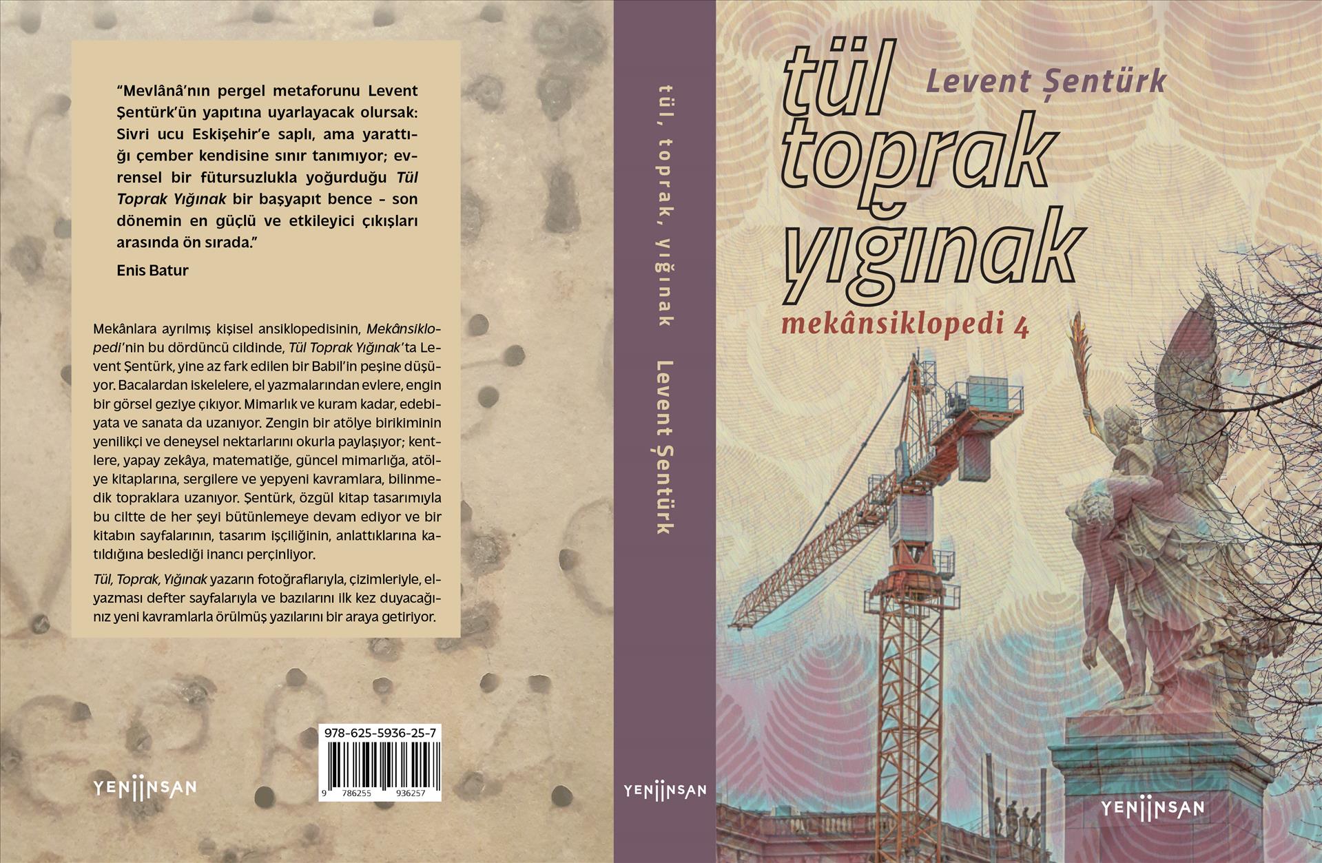 Mekânlara ayrılmış kişisel ansiklopedisinin, Mekânsiklopedi’nin bu dördüncü cildinde, Tül Toprak Yığınak’ta Levent Şentürk, yine az fark edilen bir Babil’in peşine düşüyor. Bacalardan iskelelere, el yazmalarından evlere, engin bir görsel geziye çıkıyor. Mimarlık ve kuram kadar, edebiyata ve sanata da uzanıyor. Zengin bir atölye birikiminin yenilikçi ve deneysel nektarlarını okurla paylaşıyor; kentlere, yapay zekâya, matematiğe, güncel mimarlığa, atölye kitaplarına, sergilere ve yepyeni kavramlara, bilinmedik topraklara uzanıyor. Şentürk, özgül kitap tasarımıyla bu ciltte de her şeyi bütünlemeye devam ediyor ve bir kitabın sayfalarının, tasarım işçiliğinin, anlattıklarına katıldığına beslediği inancı perçinliyor.